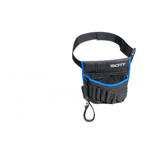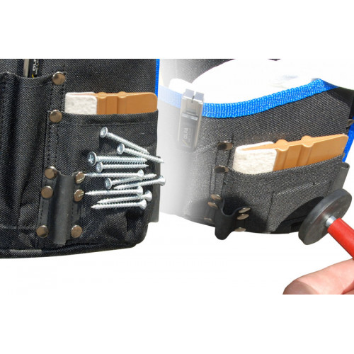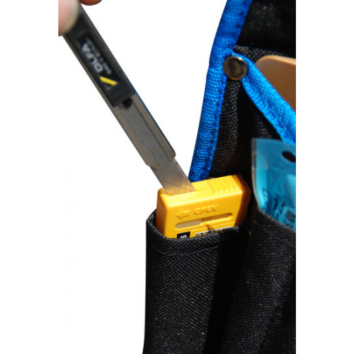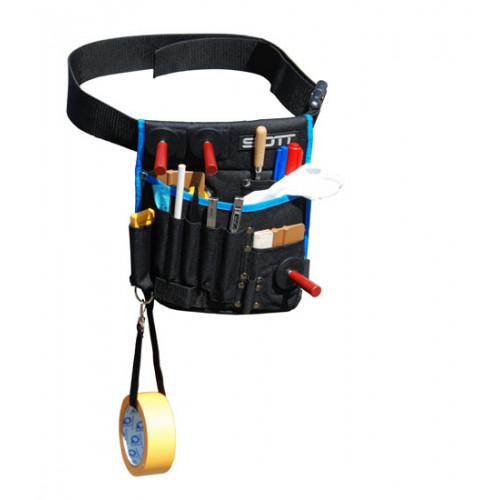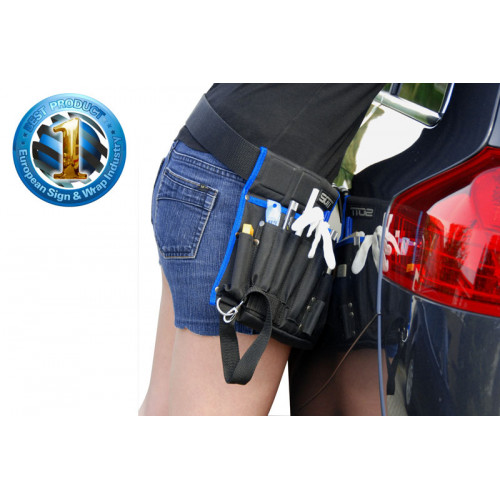 The toolbag contains no less than 19 compartments, loops and clips to carry knives, pens, squeegees, tape and cloths.