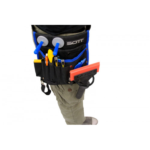 To make the SOTT Toolbag (400-016S) even more complete, there is a special bar available that can carry large plastic squeegees, window squeegees, spray bottles, etc. Slide the bar into the two existing loops and done. The SOTT Toolbag bar is made of black passivated metal and thus resistant against rust and oxidation.
