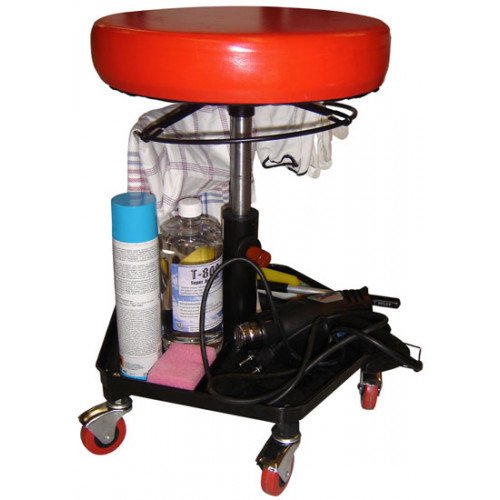 This is extremely convenient: a gas-lift work stool with a tool tray and castor wheels. The soft, comfortable upholstery keeps you comfortably seated even during lengthy jobs. Underneath the seat, a ring has been fitted with which you can operate the gas lift, adjusting the height to your exact preference.